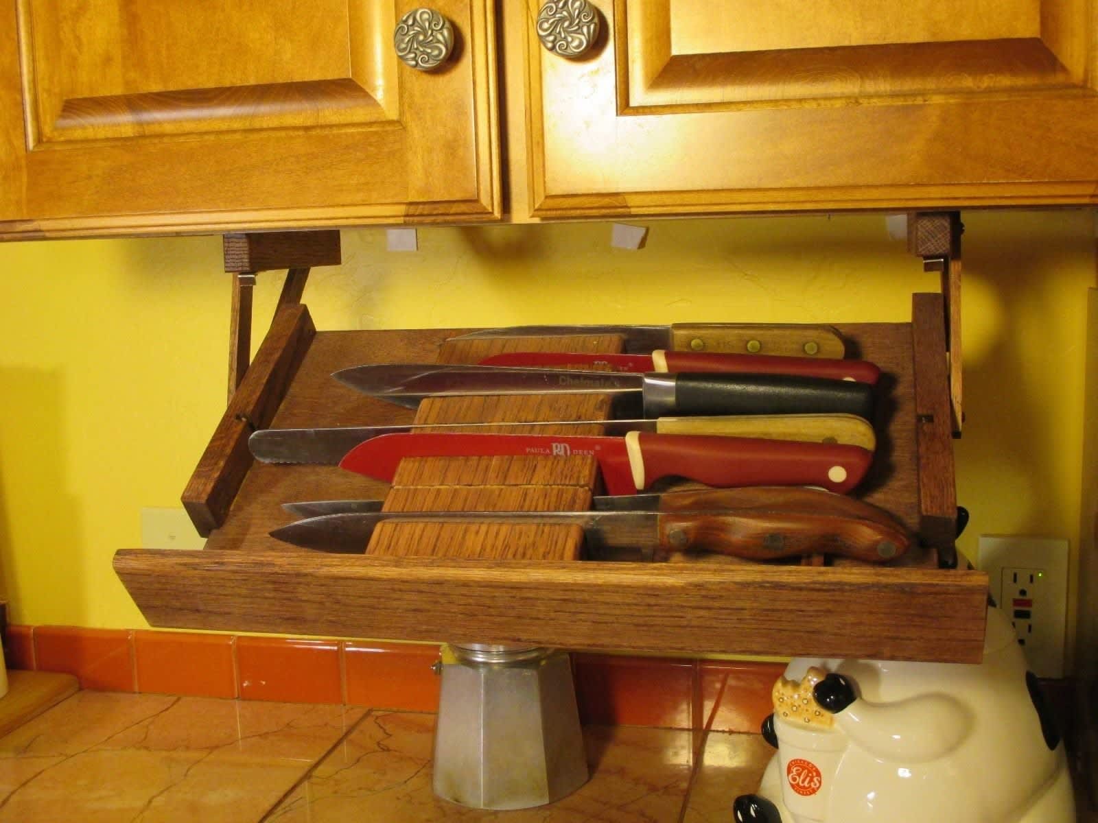Do you think under cabinet knife storage diy appears to be like nice? It's possible you'll found another under cabinet knife storage diy better design ideas. Creative knife holder knife fork spoon storage rack wood multil knife stand cabinet tray kitchen accessories utensil kitchen organizer 23×6×6cm wood adhesive paper towel holder under cabinet for kitchen bathroom storage organizer органайзер. You'll feel more inclined to grab an orange or two if they're hanging near eye if your apartment blends both your kitchen and your living room into one space, this diy pallet island is a fun kitchen storage hack you'll want to try. Under cabinet drop down knife block drawer kitchen cabinets.