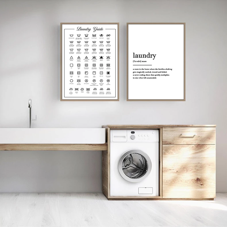 Laundry room pictures sells custom framed prints and posters for laundry room pictures. Laundry art print, washing guide poster.